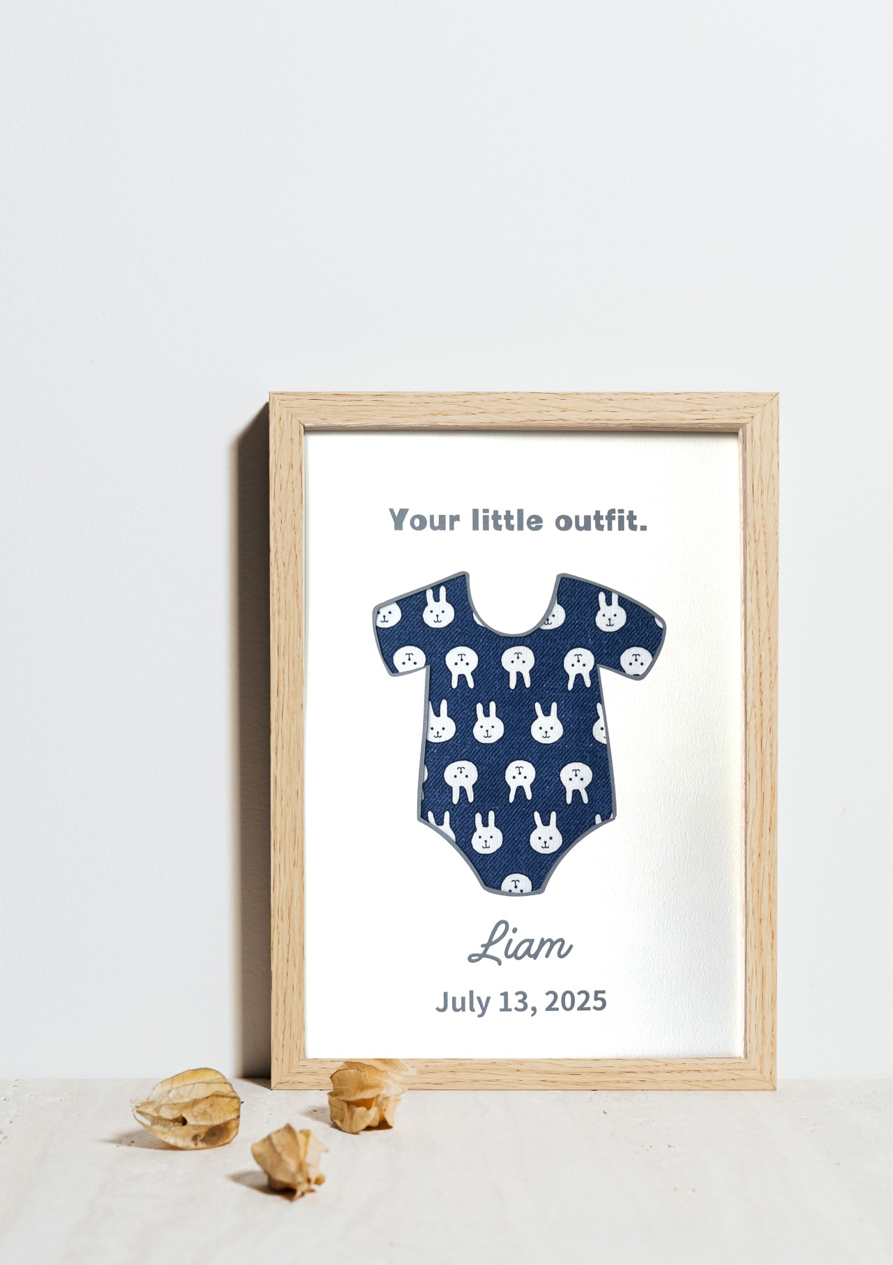 思い出の詰まったベビー服をずっと飾れる形に。お名前や誕生日を入れて、特別な思い出を残します。